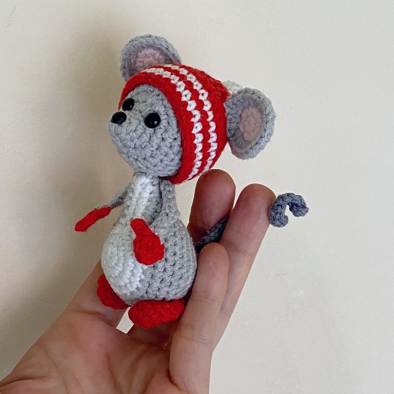 Create your own adorable Christmas mouse with this easy-to-follow crochet pattern! This little mouse wears a cozy winter hat.