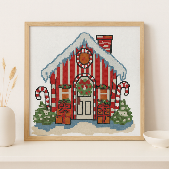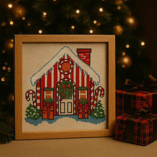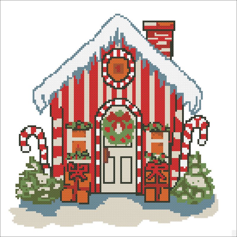 Bring the magic of Christmas into your home with this charming Candy House cross-stitch pattern!