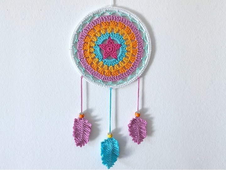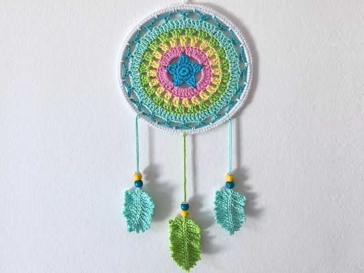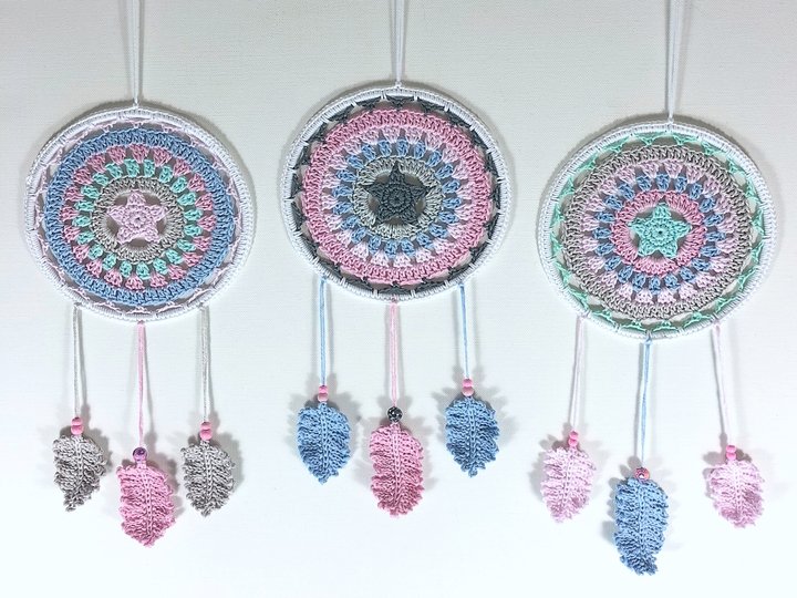 Crocheting these dreamcatchers is very simple and is therefore also wonderful for beginners. Basic crochet skills (crocheting in rounds, half, double, treble crochet, increases and decreases) are required. The crocheting of the "feathers" is a bit challenging, you'll need some patience and training.