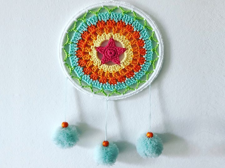 Crochet yourself colorful dream catchers for good dreams in the bedroom and children's room, but also just as a great decoration for kitchen, living room, garden. There are no limits to your creativity.