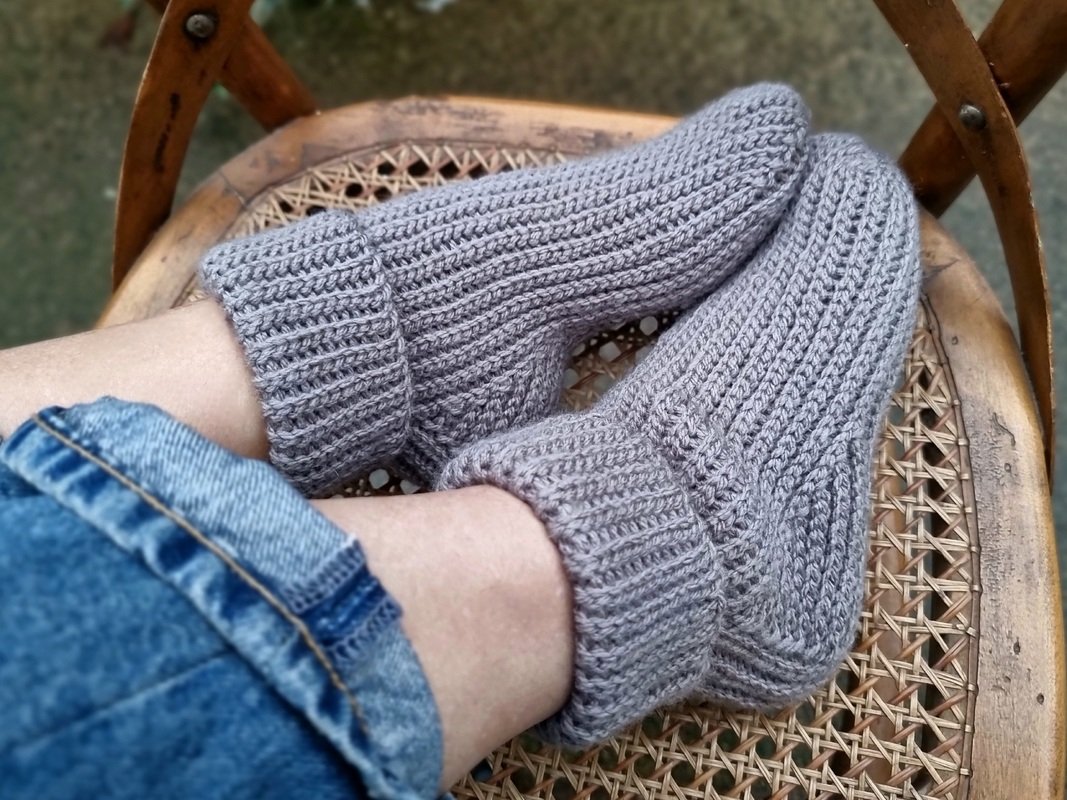 Pattern for crochet socks for foot lengths of 22-24 cm, and also describe how to change the size of the socks.