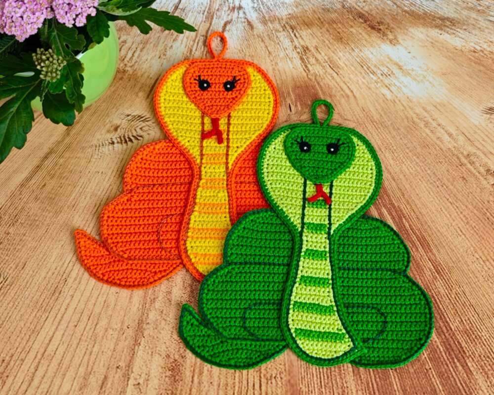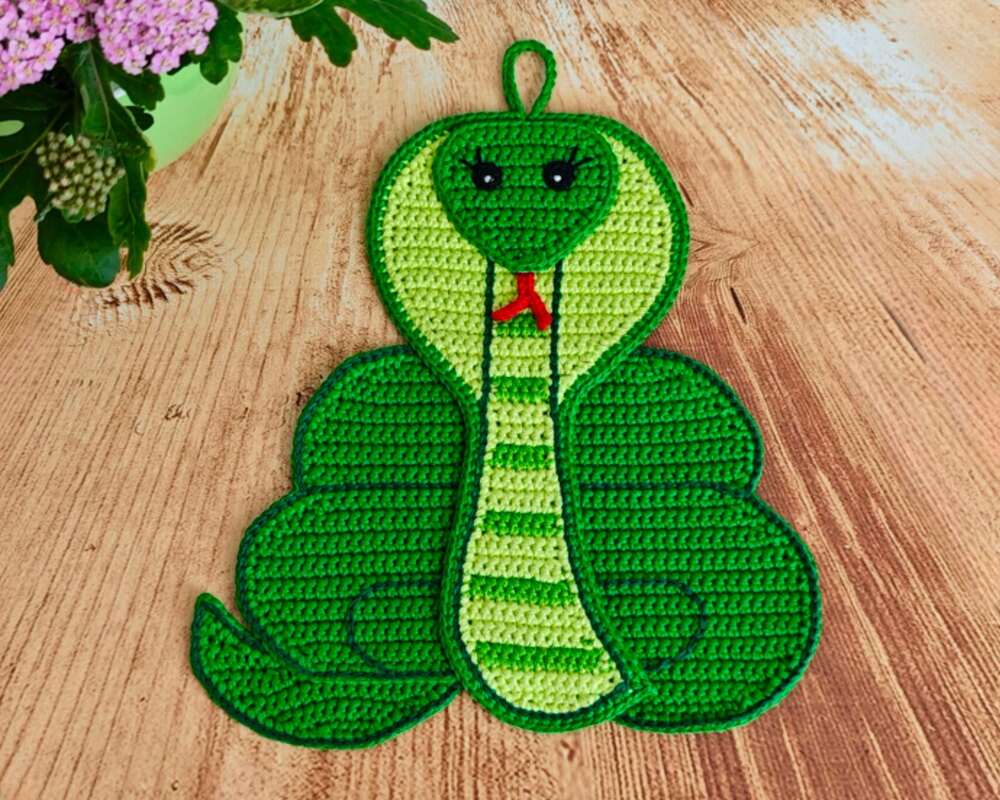 This super versatile crochet pattern lets you whip up everything from potholders to placemats, washcloths, table mats, and coasters, adding a hiss-terically adorable touch to any space.