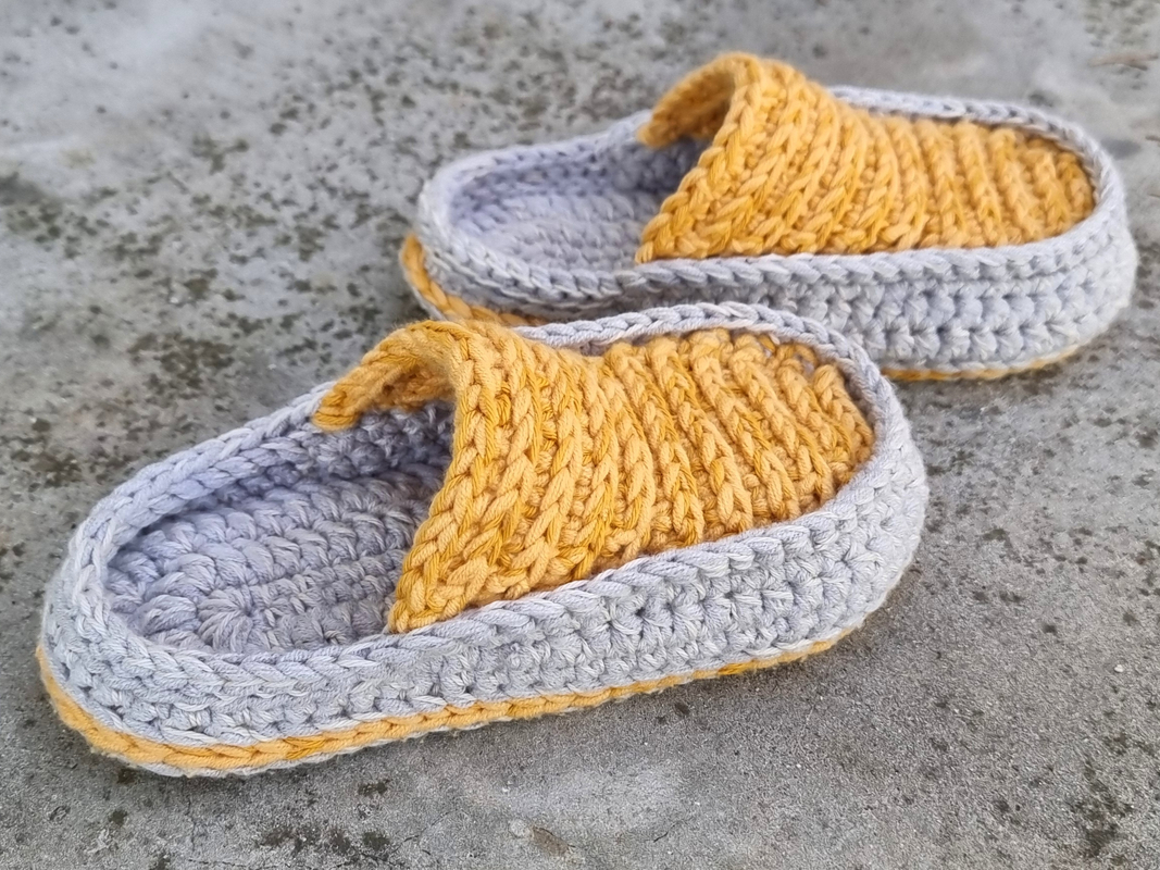 Yarn usage will depend on the slipper size. For one pair, size 36 (foot length 22 cm), I used: