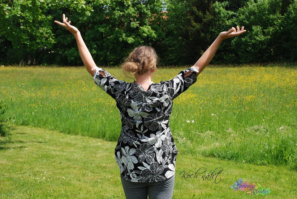Carla ist eine Körper-umspielende Blusentunika, welche komplett aus Webware genäht wird.