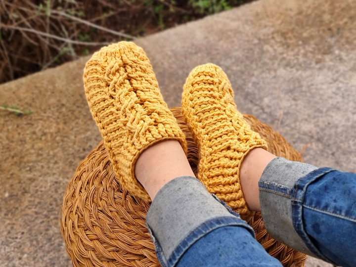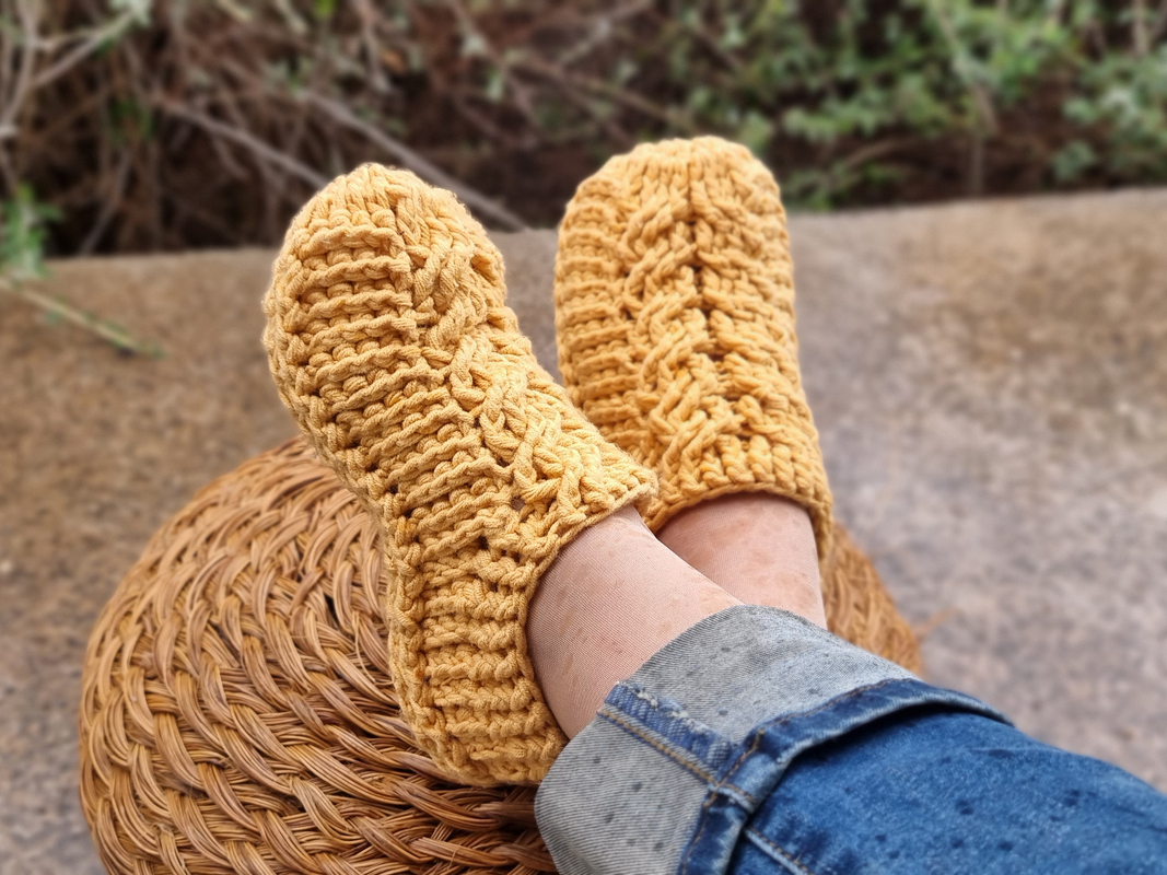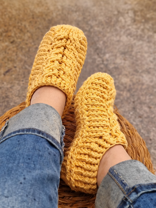 Crochet these wonderful socks for your home. The pattern provides a detailed description of the process. Every step is accompanied by photos. The instructions also include explanations of the abbreviations used, the required materials, and recommendations for crochet gauge.