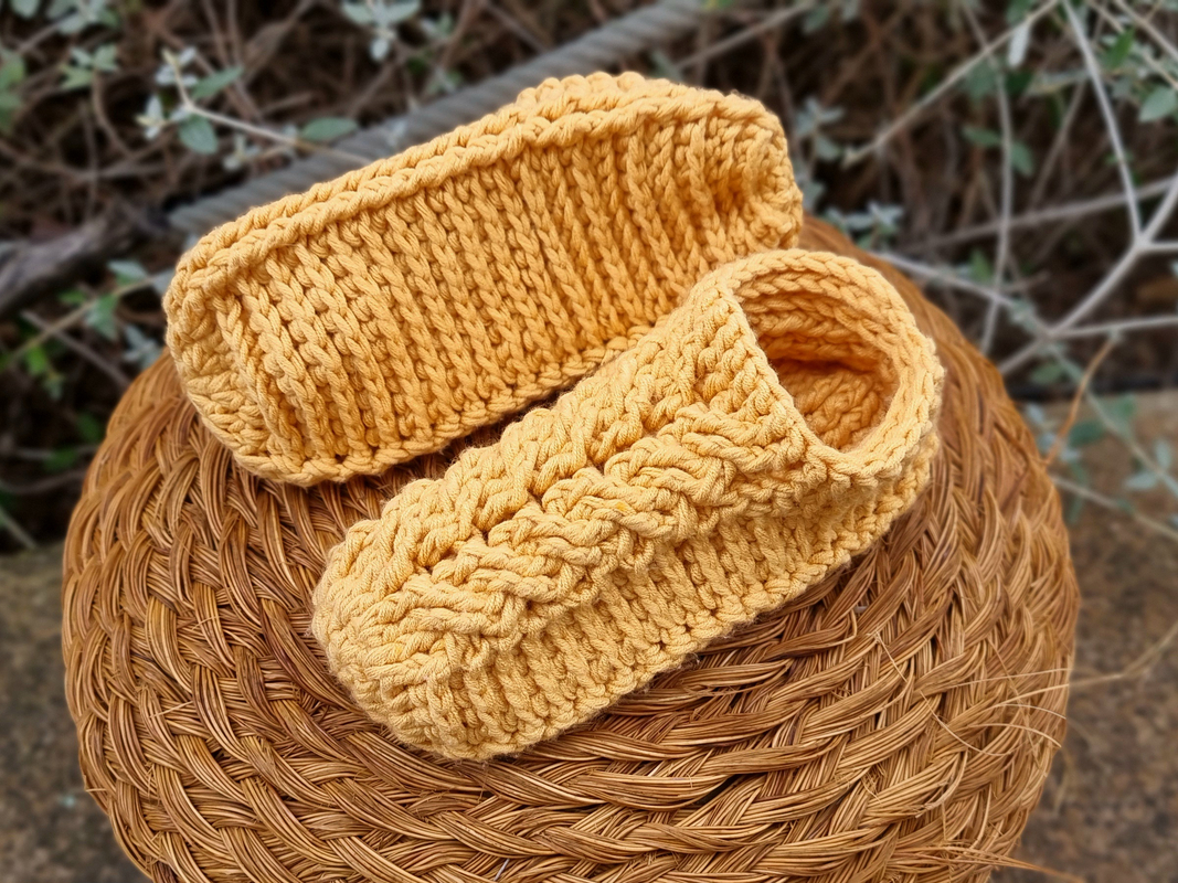Yarn consumption for slippers, foot length 22 cm – 200 g (220–230 m).