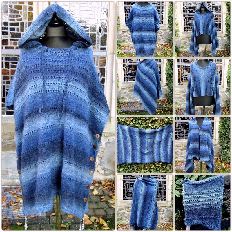 Versa, named for being versatile, is a poncho. But it is not just a poncho. Because it is a versatile garment. Additonally, it comes with a replacable hood.