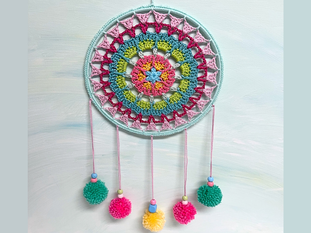 Crocheting my dreamcatchers is relatively easy and, with some basic knowledge, is also wonderfully suitable for beginners. Basic crochet skills (crocheting in the round, slip stitches, single crochets, double crochets, increases, and decreases) are assumed.