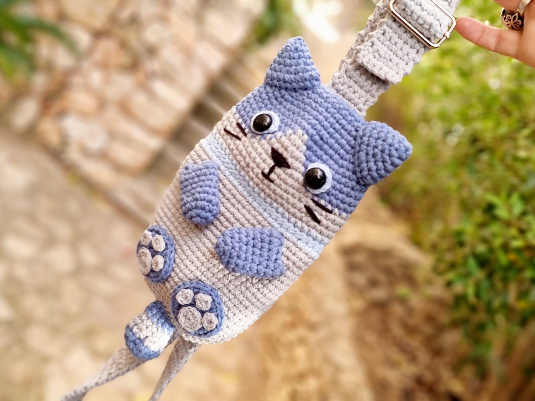 Crochet this fun and charming cat-shaped sling bag with me.