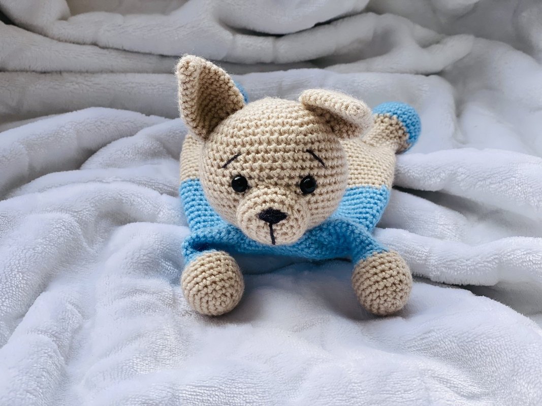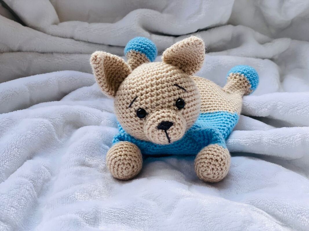 Lernen Sie unseren Welpenfreund kennen! Mit Liebe gehäkelt, ist dieser kleine Hund bereit, der erste treue Freund Ihres Babys zu sein. Der perfekte, weiche Begleiter für Kuscheln und Lächeln!