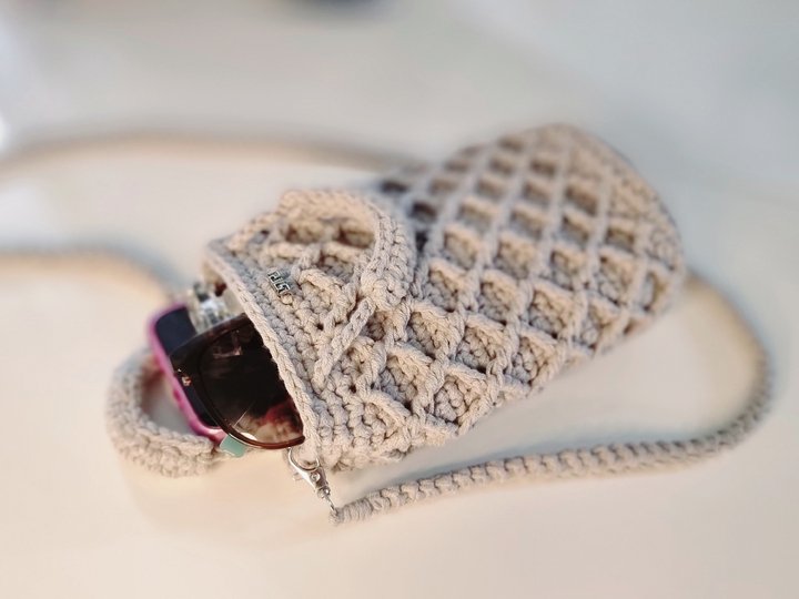 Crochet with me this lovely small crossbody bag, perfect for carrying little essentials like your phone, small wallet, or car keys.