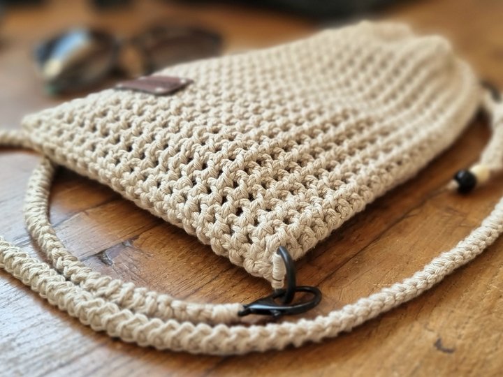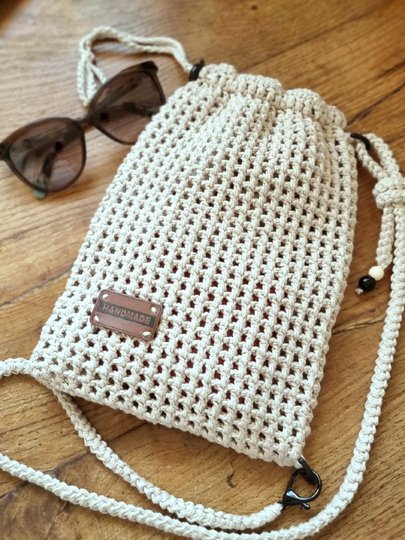My bag is crocheted with double thread from 100% cotton yarn Melissa Platinum Cotton. In one skein of 75 gr 150 m.