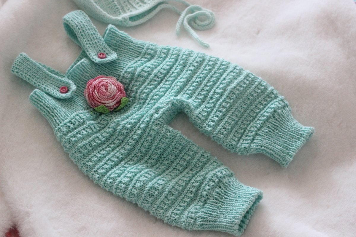 Knitting pattern for cute baby romper to keep little body warm in style. Easy to slip on and off. Suits to preemies, newborn babies and also baby dolls 46-50 cm