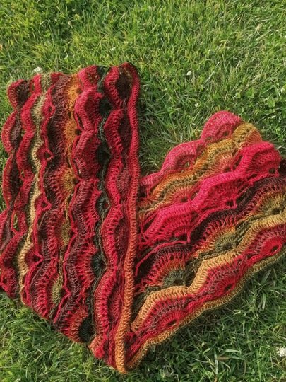 With its beautiful color transitions and flowing wave pattern, Nol makes a stunning accessory — wear it small as a neck scarf or larger as an elegant shawl.