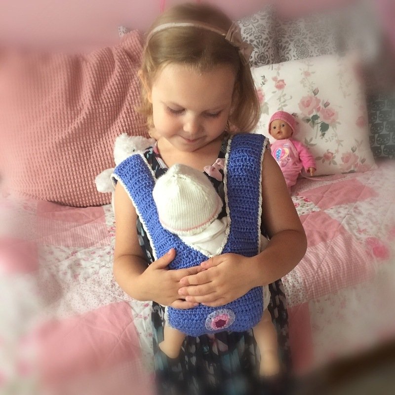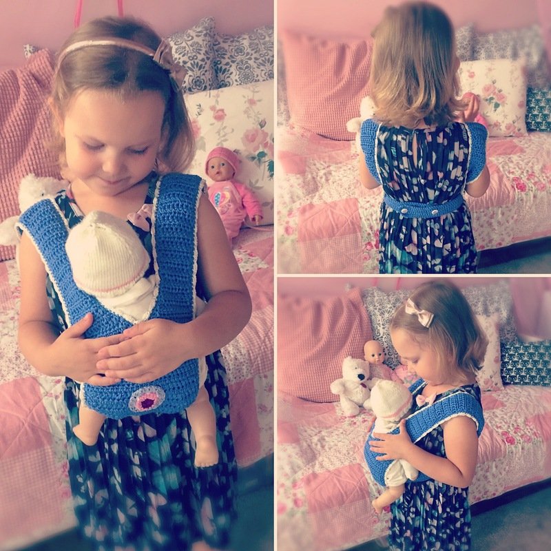 Puppentrage für die Puppenmamas. In Reihen gehäkelt. die Anleitung ist mit vielen Bildern versehen, auch für Anfänger geeignet.