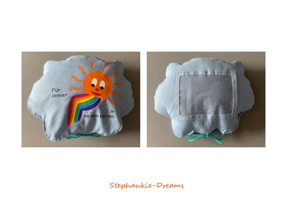 Sewn pieces made from this pattern may be sold without any quantity restrictions. The author of the pattern ('memory pillow heart, cloud and star' by Stephankie-Dreams) must be credited in the description text. Mass production, publication of the eBook, or sharing any parts of it is expressly prohibited.