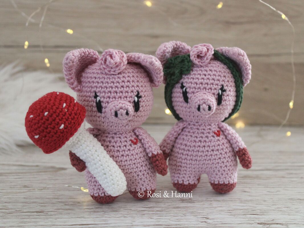 Häkelanleitung "Glücksschwein Amanda mit Kleeblatt und Fliegenpilz“