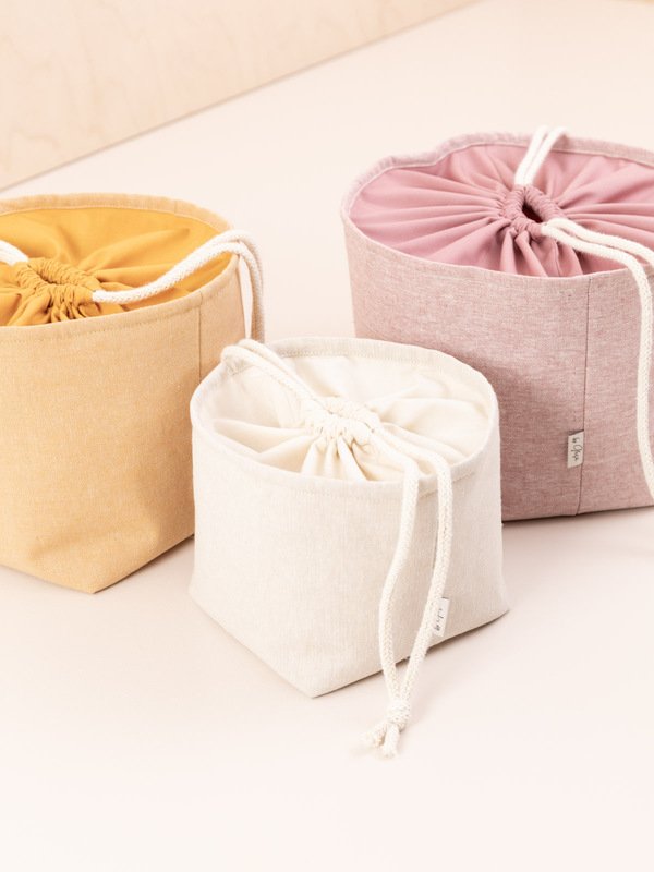 Utensilo baskets are one of the most versatile sewing projects – perfect for using up fabric scraps or creating a practical and beautiful gift. I especially love the version with a drawstring closure because it not only helps tidy up open shelves but also allows you to store your items securely and take them anywhere. Whether for yarn, kids’ craft supplies, or travel essentials, this utensilo is a practical companion.