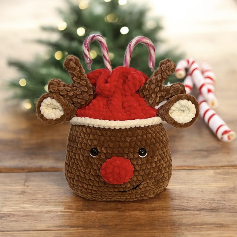 Mit dieser Häkelanleitung kannst du ein herziges Rentier-Säckchen zum Befüllen häkeln, das mehr ist als nur ein Geschenk. Es ist eine kleine, selbstgemachte Freude zur Weihnachtszeit. Das etwa 20 × 25 cm grosse Säckchen eignet sich perfekt, um jemandem eine besondere Aufmerksamkeit zu überreichen, sei es zum Nikolaus, als Adventsüberraschung oder als festliches Geschenk unter dem Weihnachtsbaum. Hier steckt etwas Persönliches drin und ist mit viel Herz gemacht.