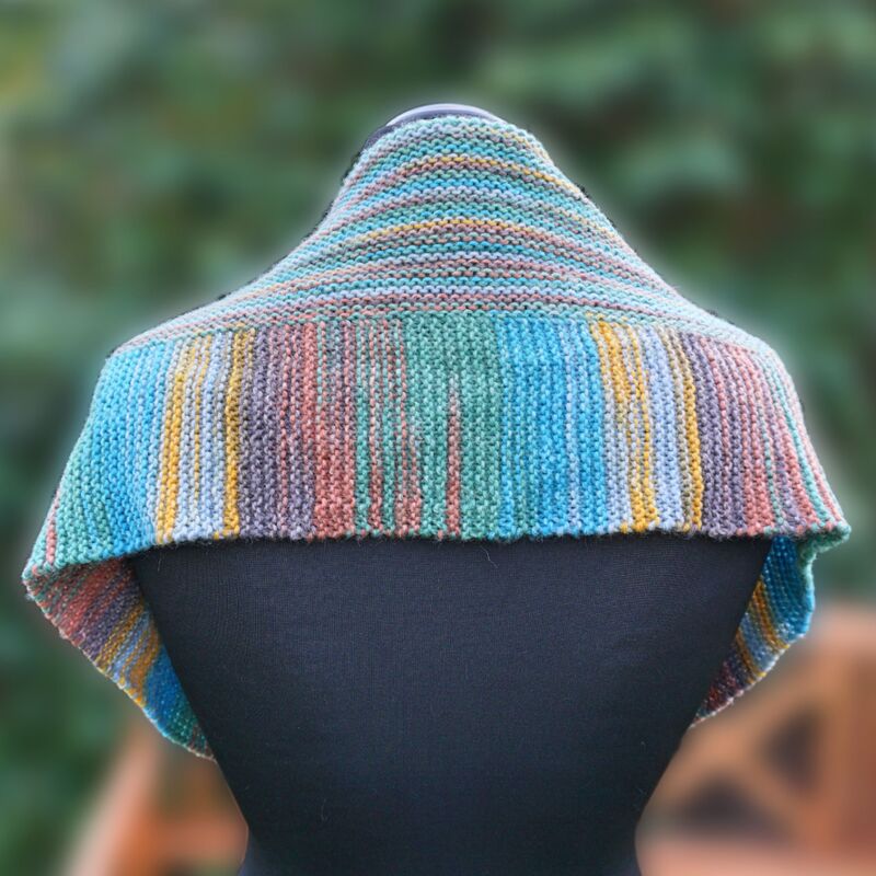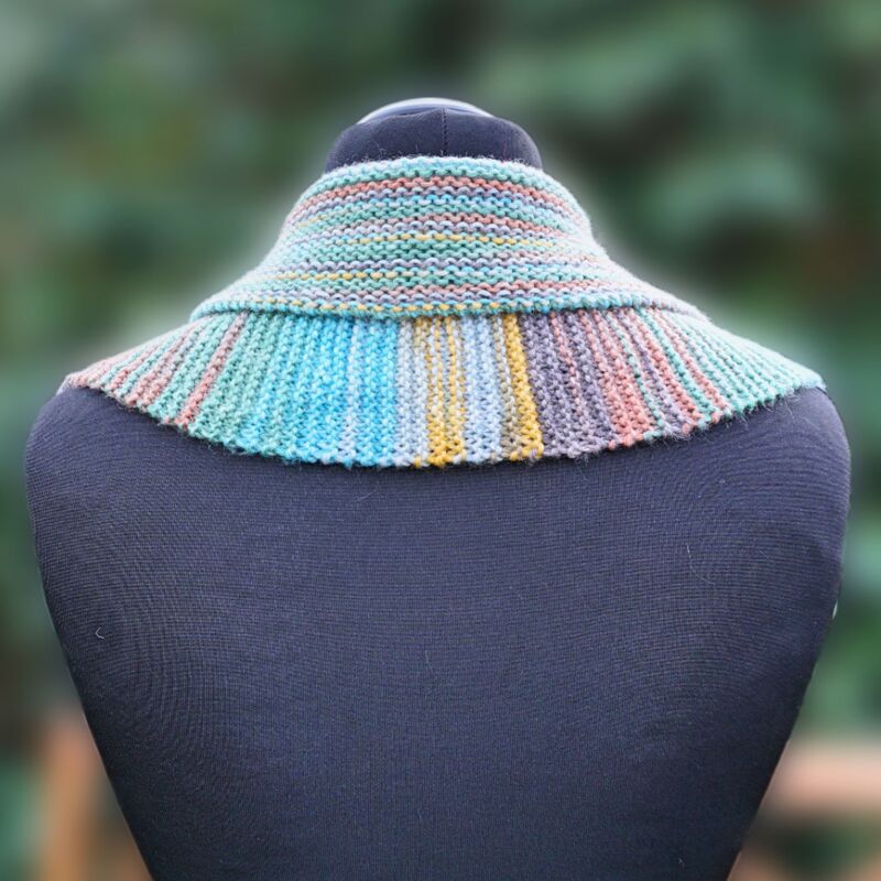 The Anmore Loop combines straight lines, garter stitch and the random scatter of colours in a variegated yarn in a surprising way.