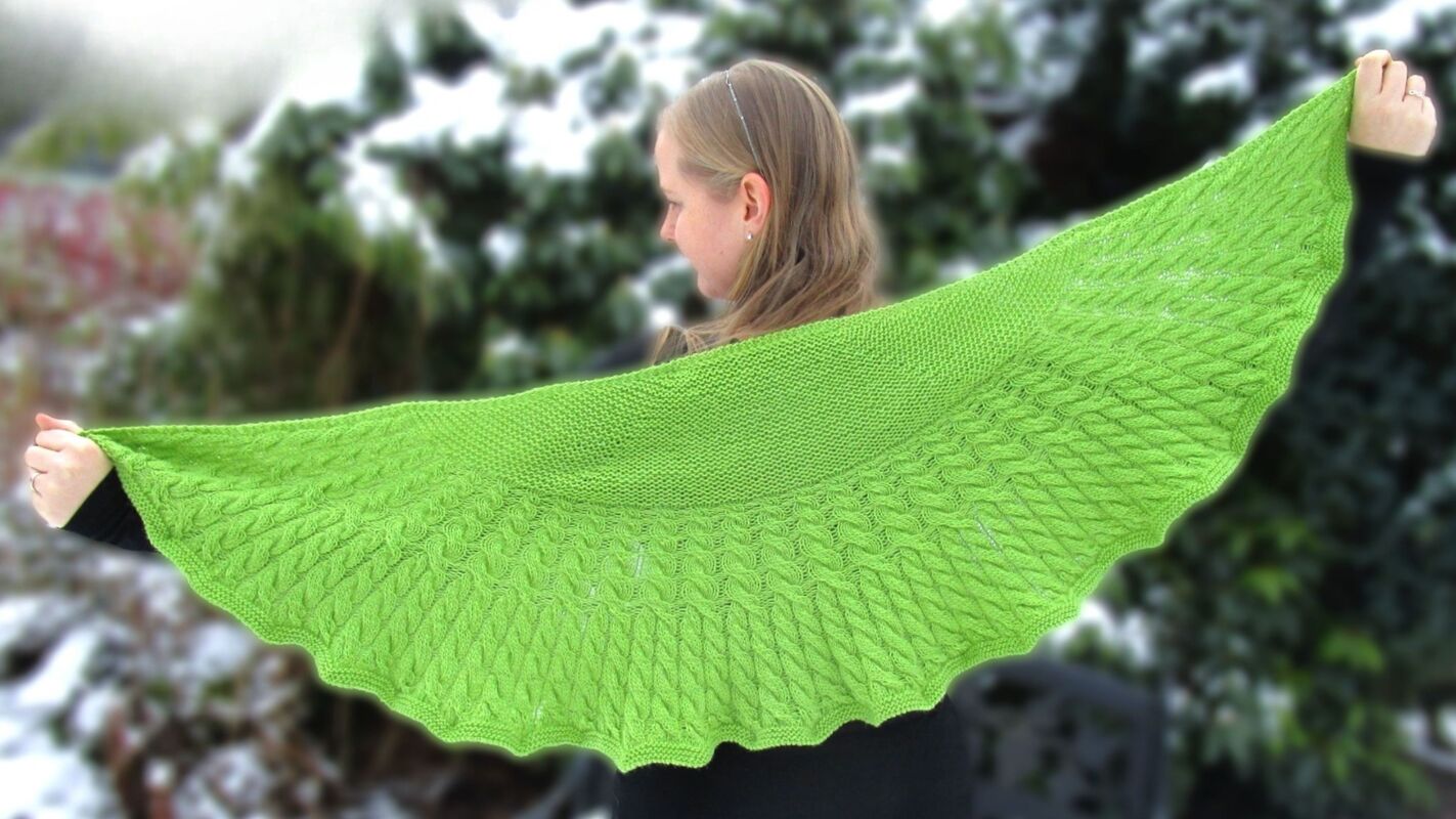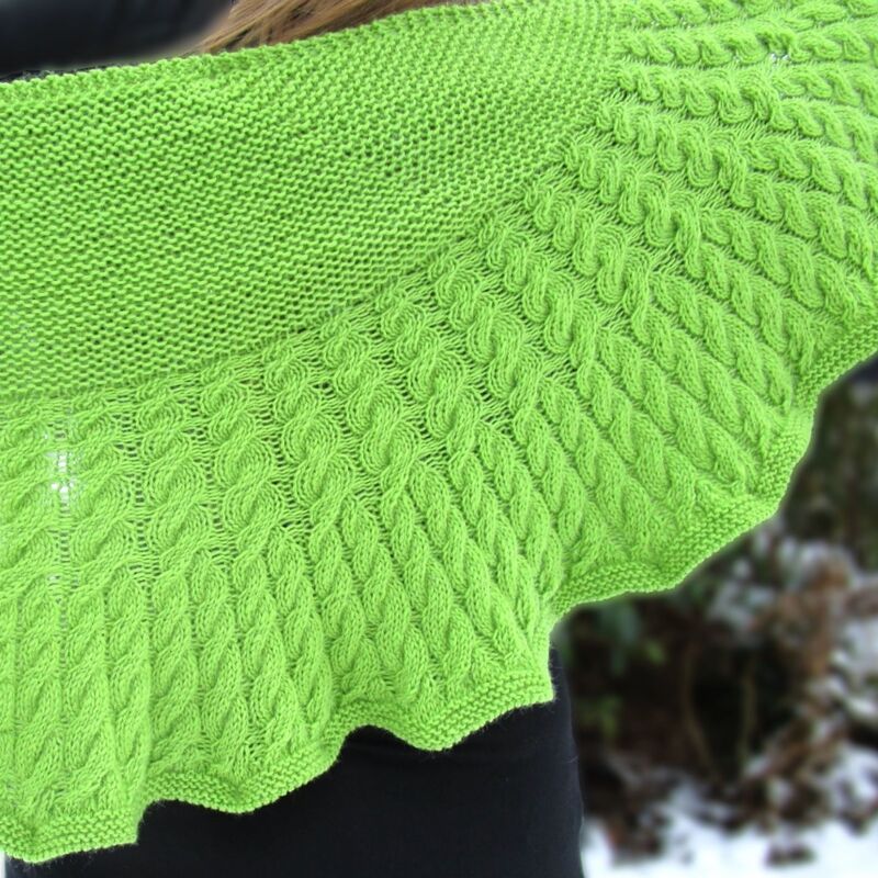 The paths you take in life are often unpredictable. They twist and turn. Suddenly new possibilities appear and you have to choose the correct path. The Lebenswege Hug shawl symbolizes these paths of life. The cables become larger and wider, as many paths in life do. They twist and turn and separate themselves and new paths come into existence, until the very end. Here as well, they split up again to form new small cables, just as new paths and new chances can appear later in life. Those only end when you take your last breath.