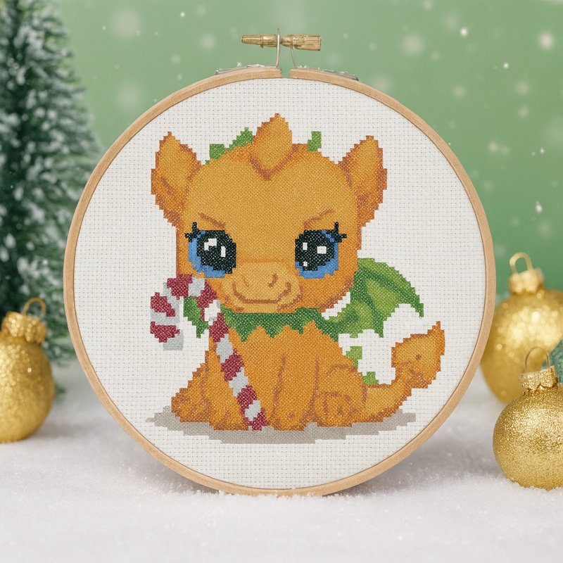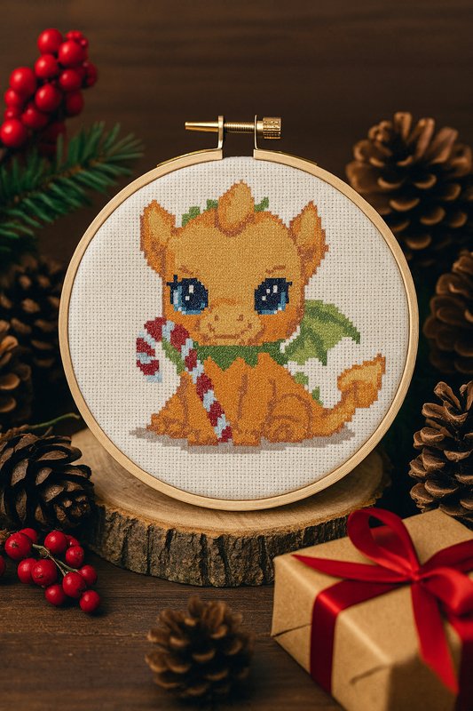 Create a warm holiday atmosphere with this charming baby dragon embroidery. Perfect as a handmade Christmas gift!