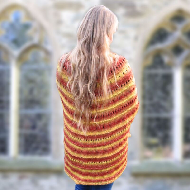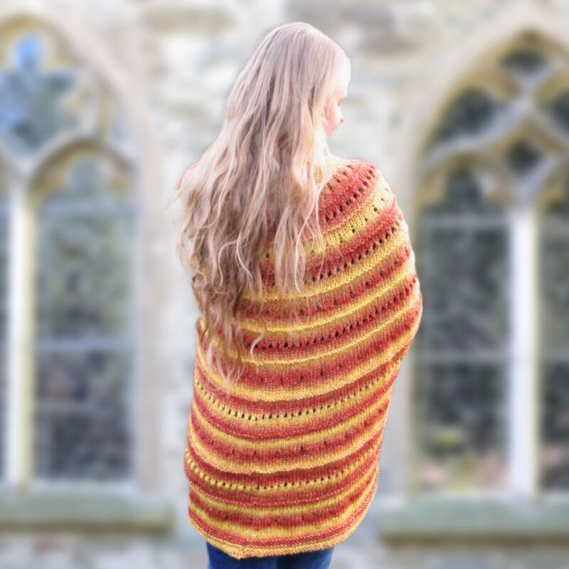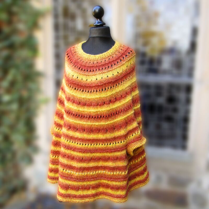 At the end of this pattern, there is a workshop on how to adjust the poncho to any size and yarn weight. So you can knit it in children’s sizes as well.