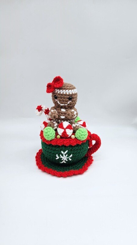 This cozy teacup is blooming with everlasting sweets, and a curious little gingerbread who’s made it its home.