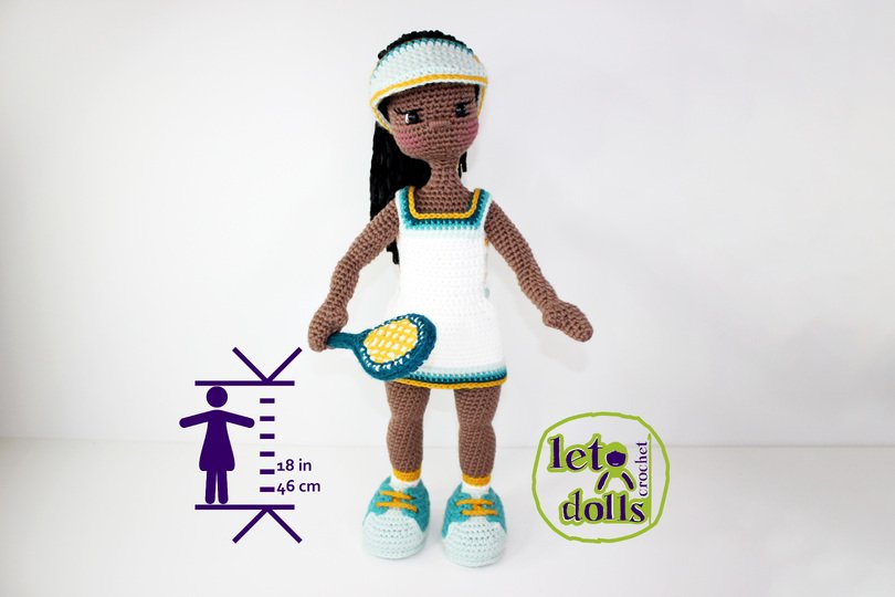 This listing is for a crochet pattern to make the pictured Serena doll.