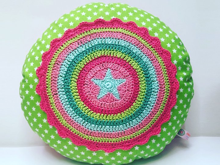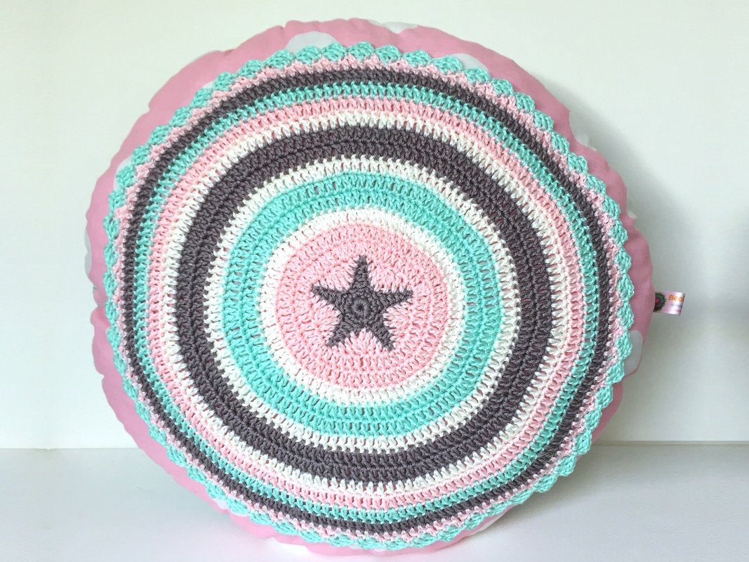 If you love crocheting and sewing beautiful things and want a detailed guide to create a stunning round pillow with a star motif in the center, this crochet and sewing pattern is just what you need! With this crochet pattern, you can easily and quickly make a gorgeous star pillow in different sizes. Crocheting and sewing the pillow is fairly simple, making it perfect for confident beginners.