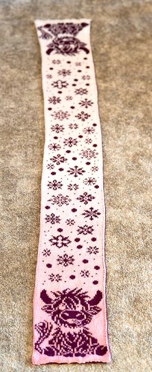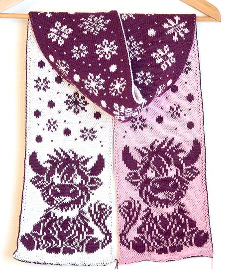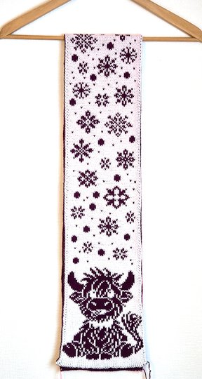 This little observation served as inspiration for the knitting instructions “Sweetie tooth loves snow”, a children's scarf using the double-face technique. With my instructions you can easily knit the cute highland cow that waits with its tongue out for the next snowflake.
