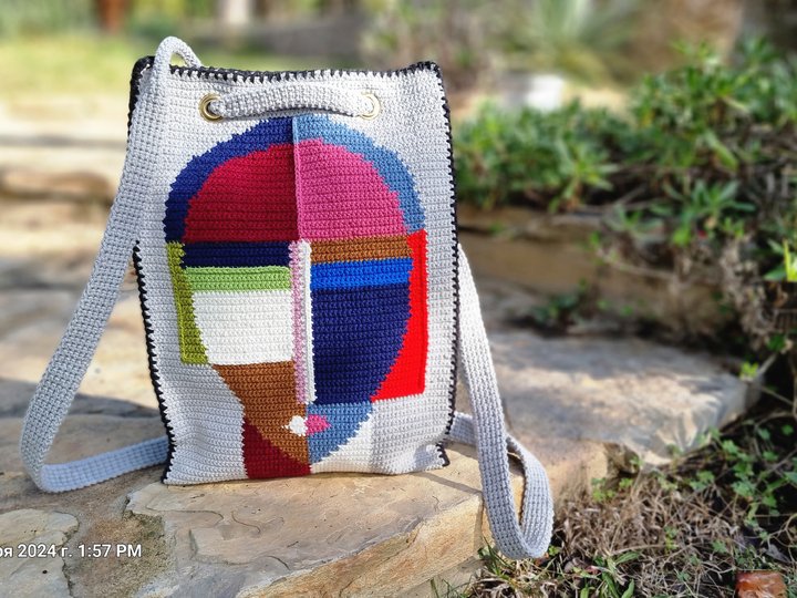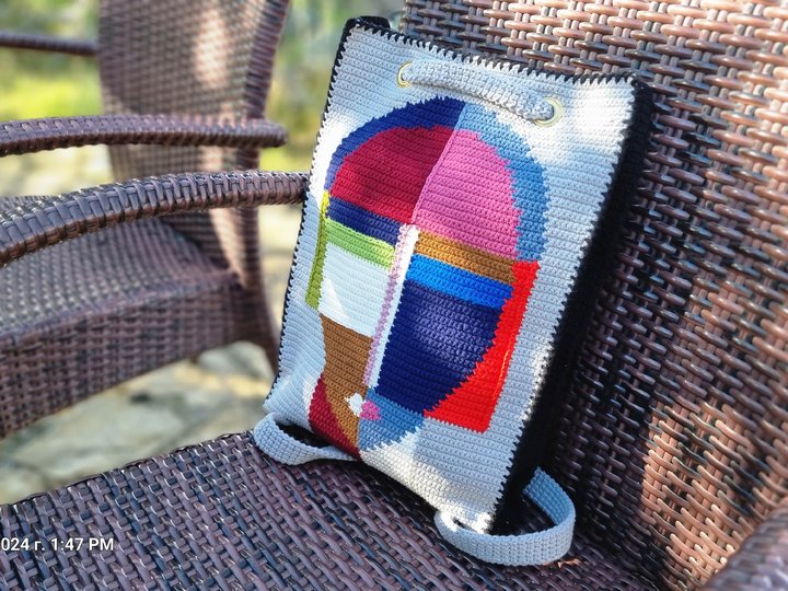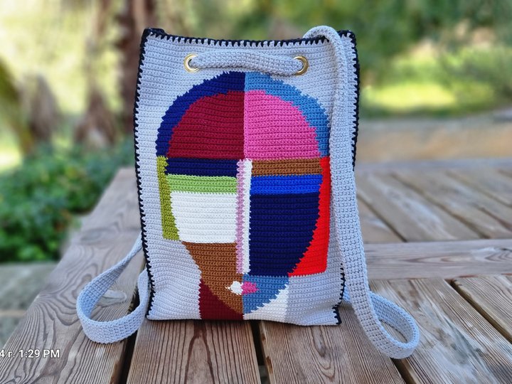 Finished measurements may vary depending on the yarn and hook size used. Gauge will also affect the size of the finished backpack. This sample has a tight gauge.