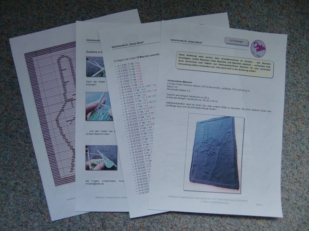 This download includes an 8-page PDF file with detailed instructions in German and English (American terminology). In addition to the graphic representation, it contains knitting instructions for the motif (e.g., row 1: k1, p5; row 2: p3, k3). The files are for personal use only.