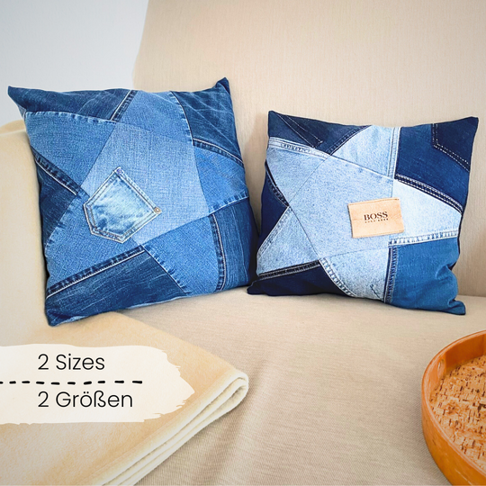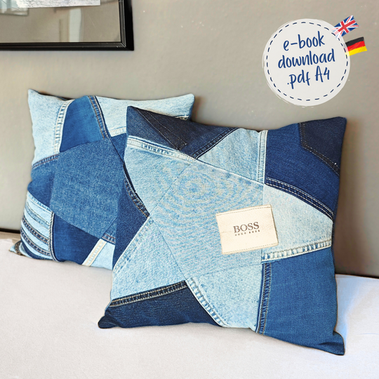 Nähe dir ein stylisches Sternenkissen aus alten Jeans und gib deinem Zuhause einen coolen Upcycling-Touch! Mit diesem Schnittmuster verwandelst du Stoffreste in ein echtes Lieblingsstück – die typischen Kappnähte bringen den authentischen Denim-Look richtig schön zur Geltung.