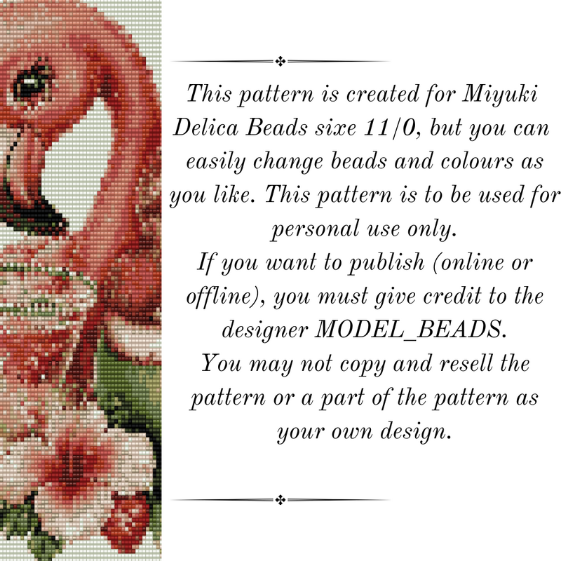 This pattern is created for Miyuki Delica seed beads size 11, but you can change colors and beads as you please.