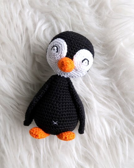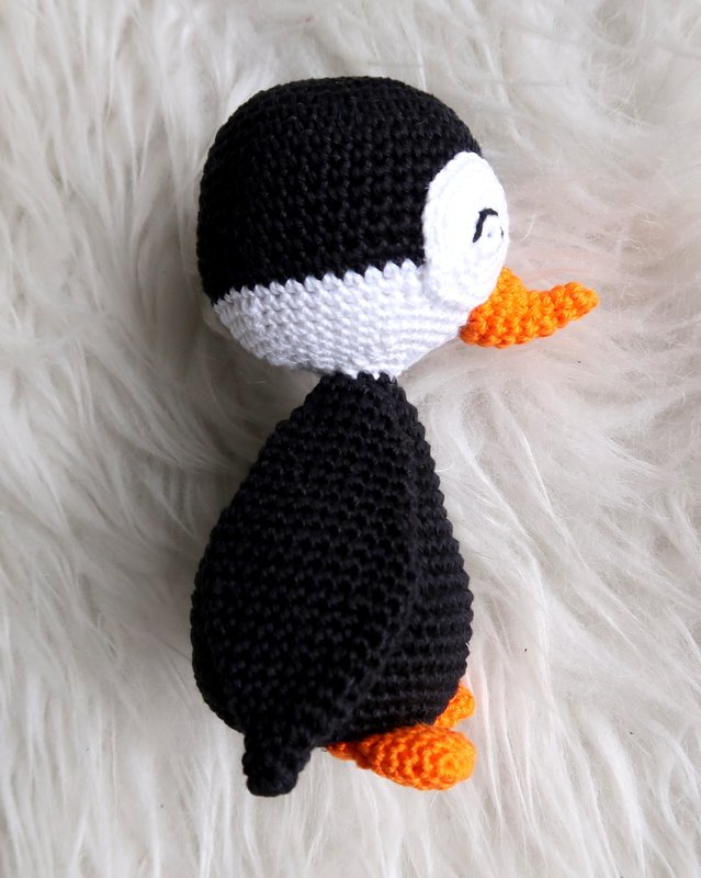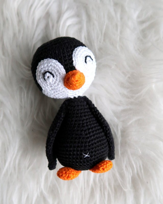 Wenn du mit Baumwolle (125m LL auf 50g) häkelst, wird dein Pinguin ca. 14cm hoch.