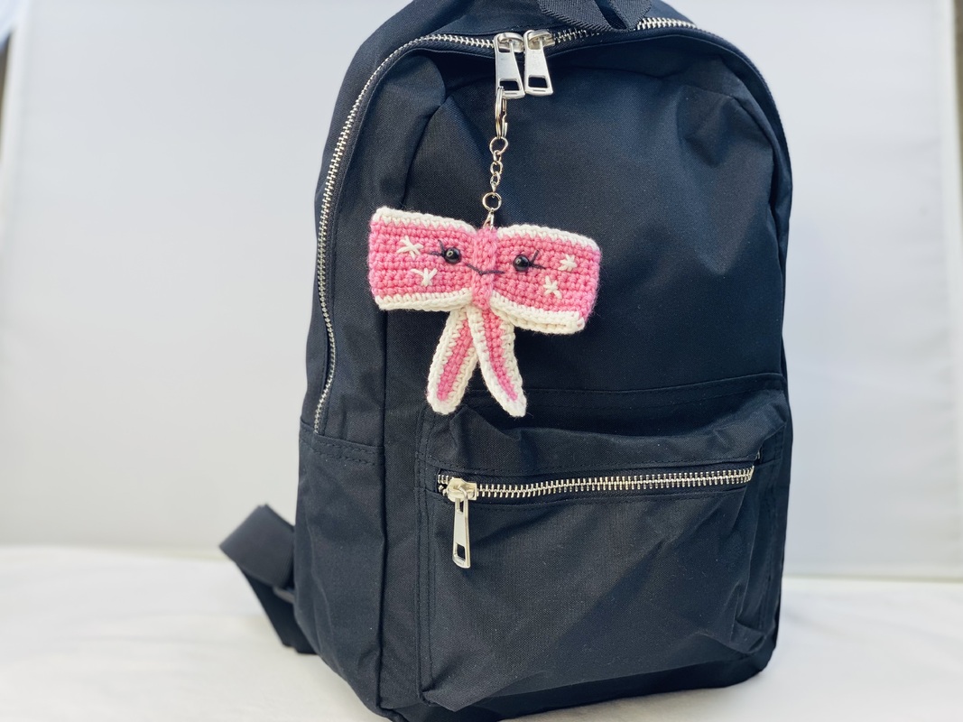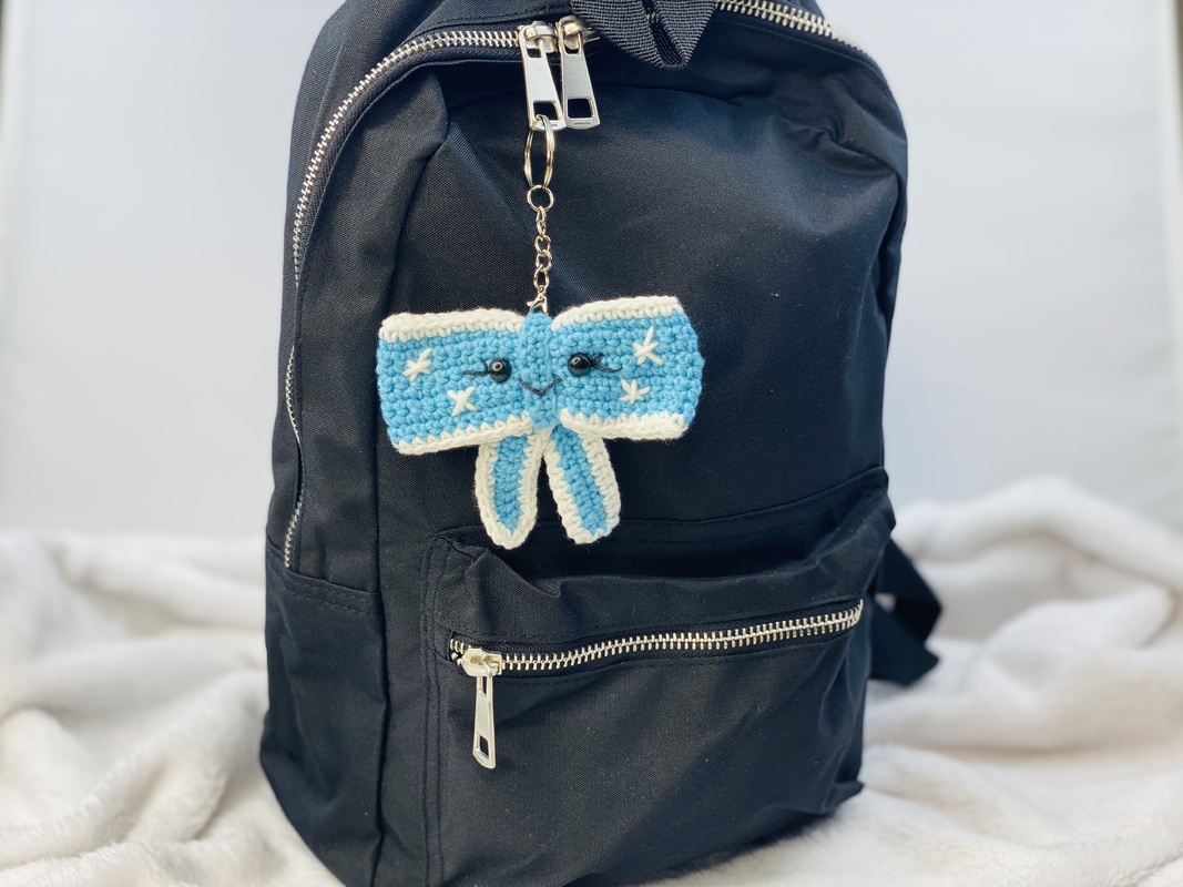 Looking for the perfect way to add charm? This crocheted bow-charm is not just decor—it’s a truly versatile accessory! Use it as a bright Christmas tree ornament or as a stylish keychain for your backpack, bag, or keys, bringing joy to you all year round.