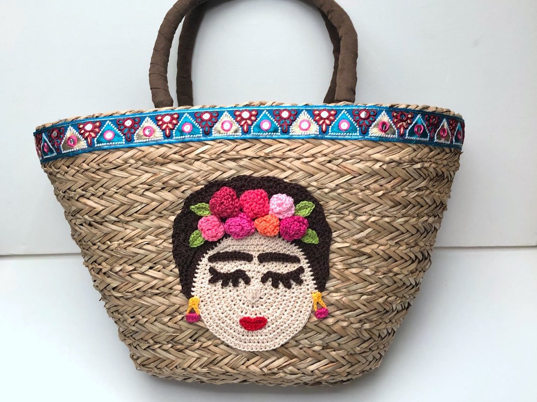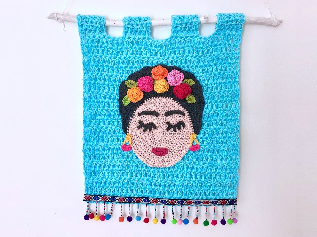 Crochet pattern for a large application in form of a woman's head with flowers crown – a Mexican beauty.