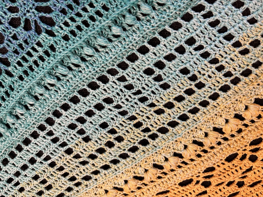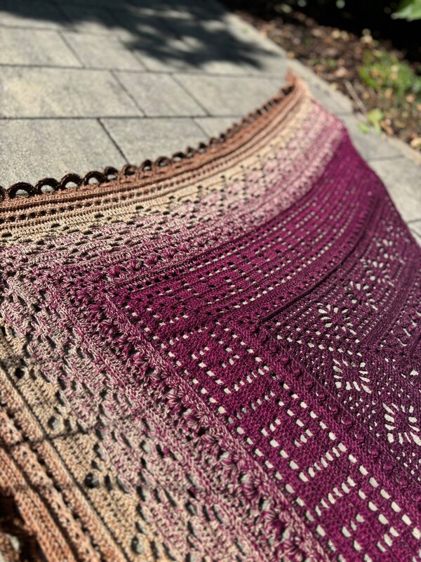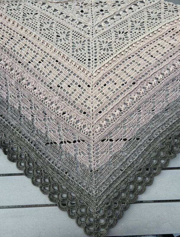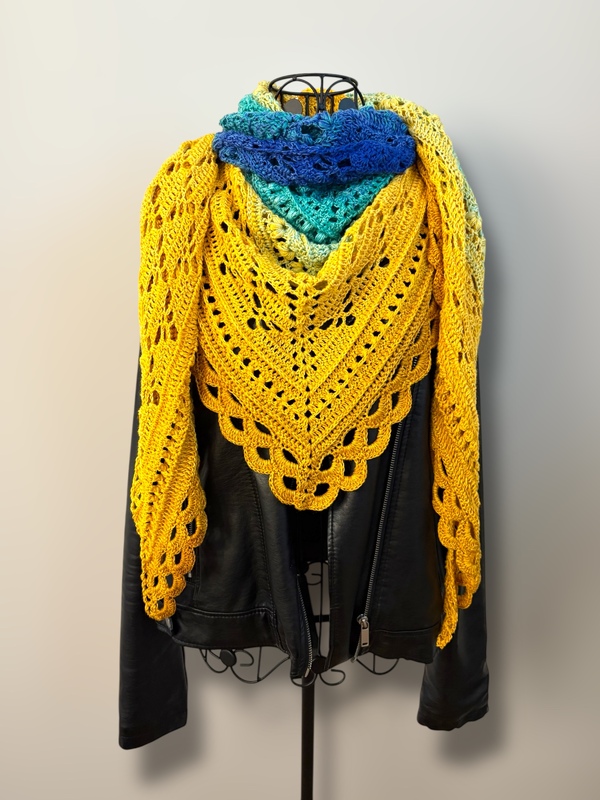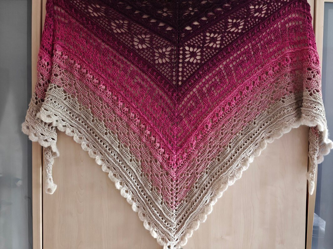 The Abia triangular scarf is an enchanting triangular shawl that captivates with its many different patterns. The varied patterns ensure that crocheting never gets boring. The last pattern section can be crocheted in any size.
