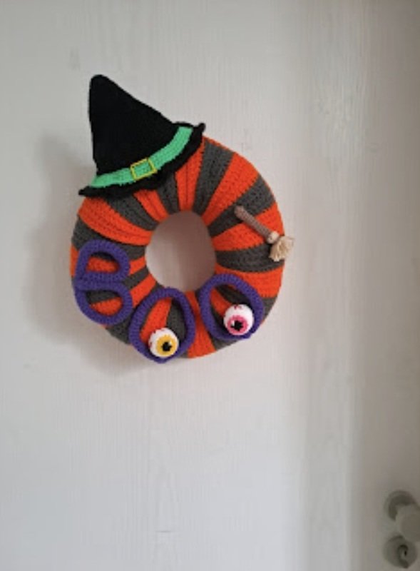 With this step by step crochet pattern you can easily crochet a Halloween door wreath.