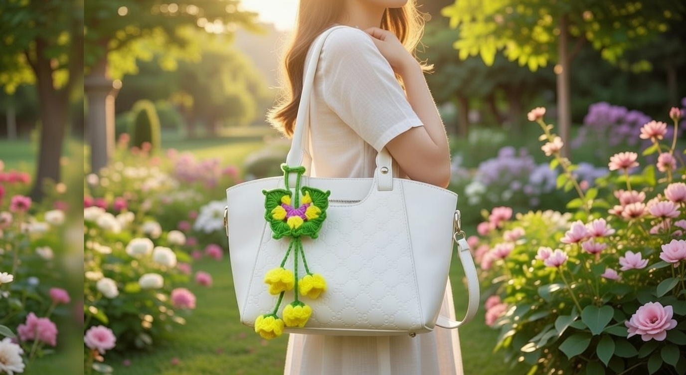 With this detailed crochet pattern, you can create a decorative Butterfly & Flower Charm Bag.