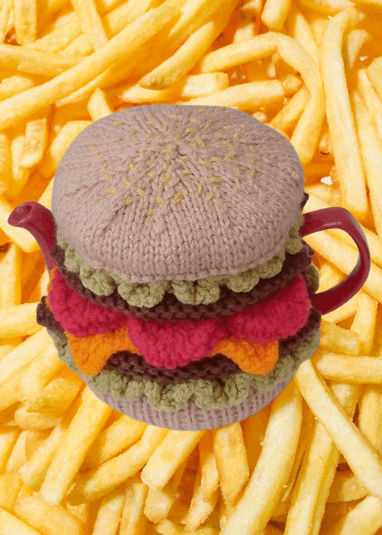 This Cheeseburger Tea Cosy Knitting Pattern is packed with vibrant colour and irresistible foodie charm. It has a playful retro feel, with a nod to classic American diner style.
