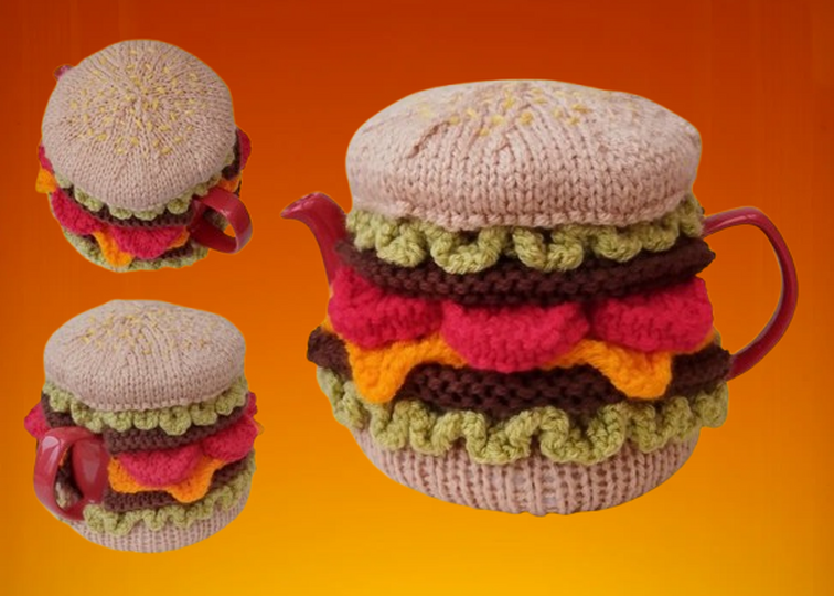 The Cheeseburger Tea Cosy Knitting Pattern from TeaCosyFolk invites knitters to create a bold, cheerful design that’s guaranteed to spark smiles.