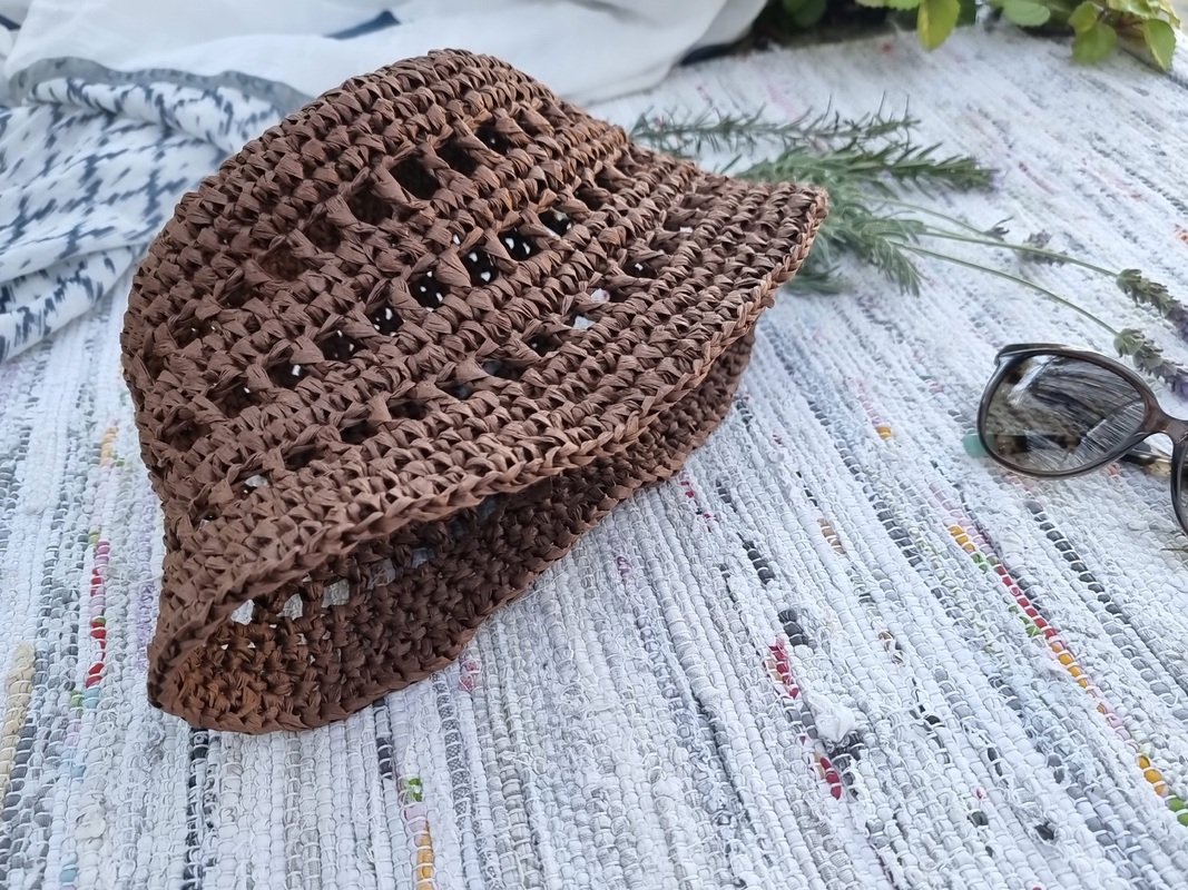 A 10 × 10cm swatch worked in continuous rounds using single crochet (sc) measures 13 sts and 13 rounds. Ensure your swatch is crocheted in the same style as the hat (rounds worked in a spiral) to match the stitch density accurately.