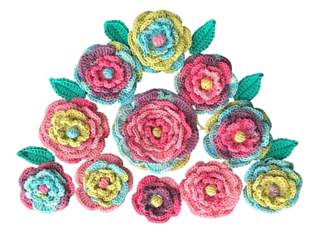 These flowers can be made with any type of yarn. The size of the finished flowers can therefore vary.
