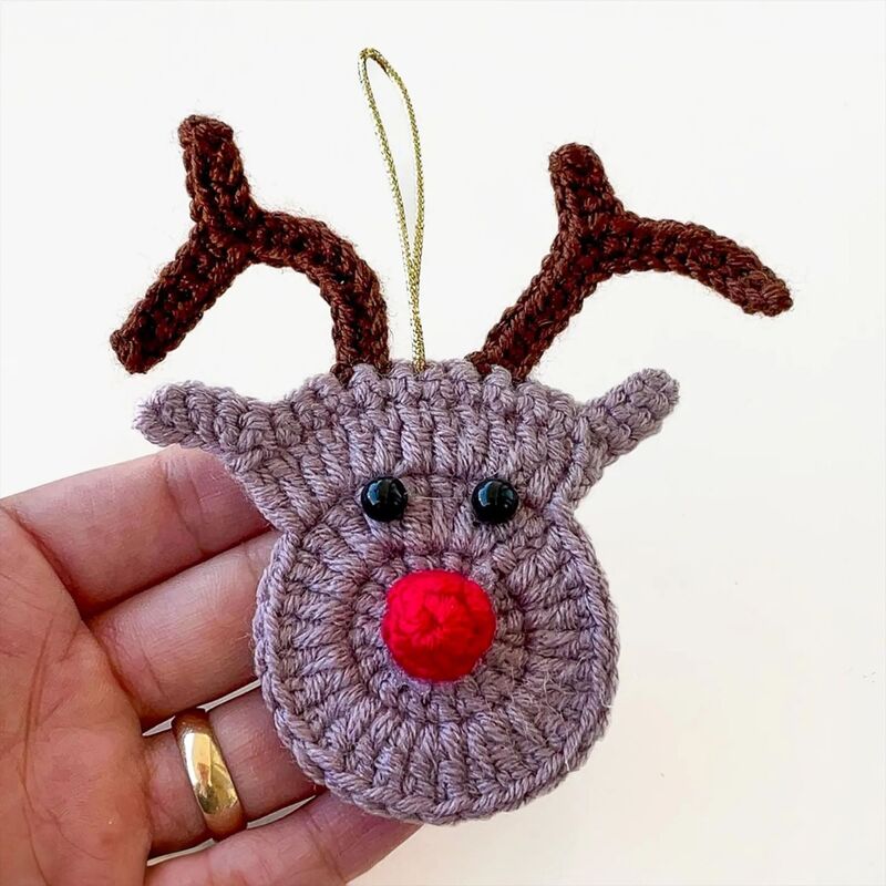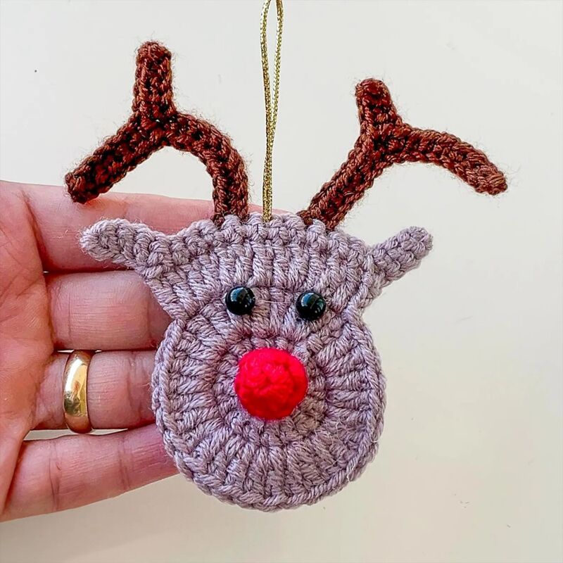 Hanging loop: Use a 10 cm (approx. 4 in) yarn piece, fold in half, knot the ends, and secure the loop between the antlers so it sits snugly.