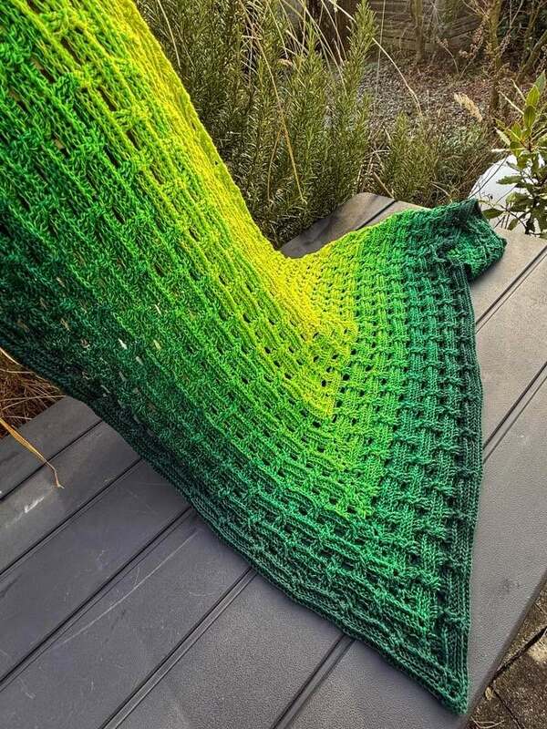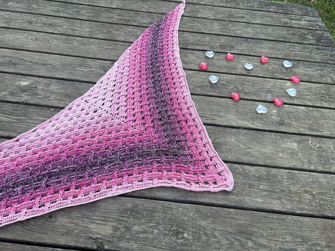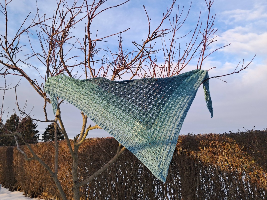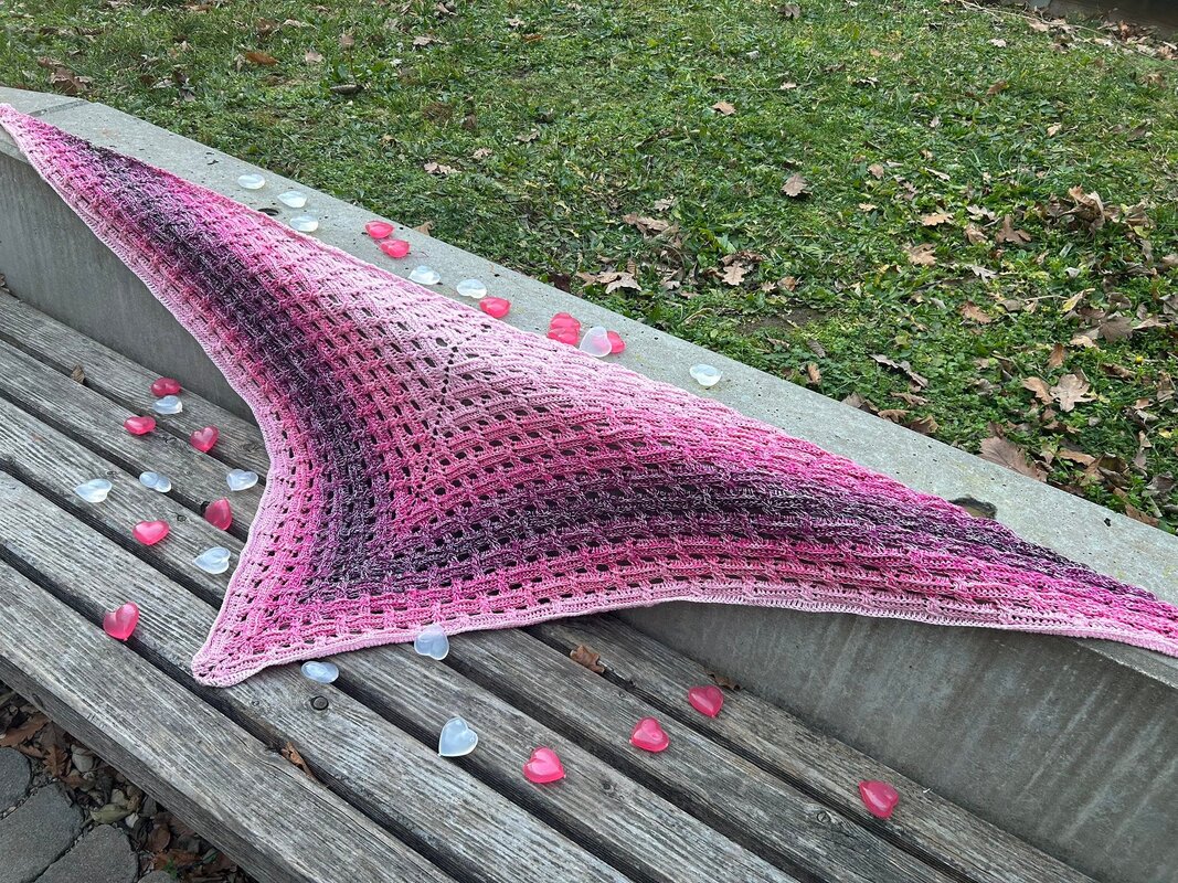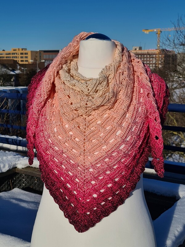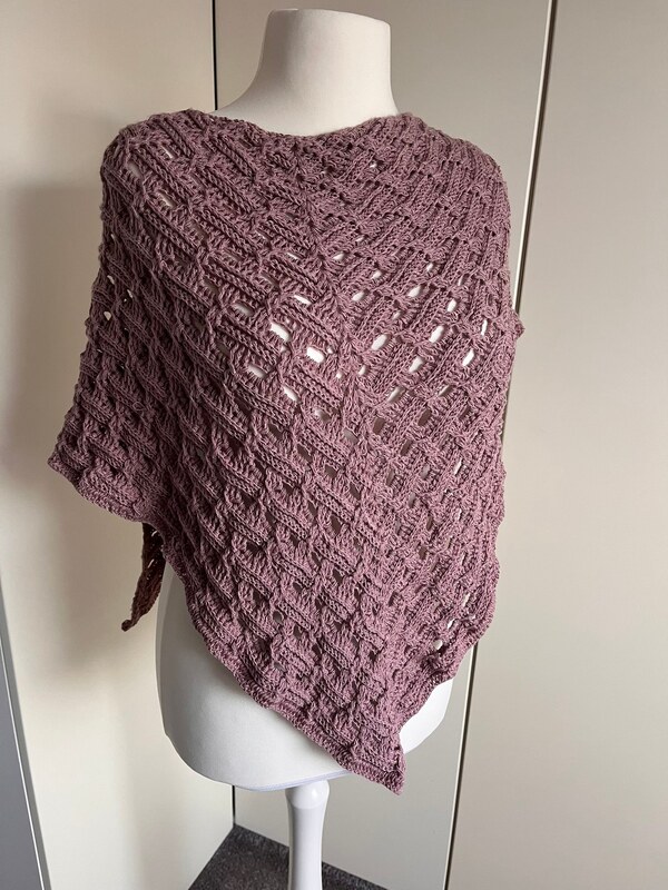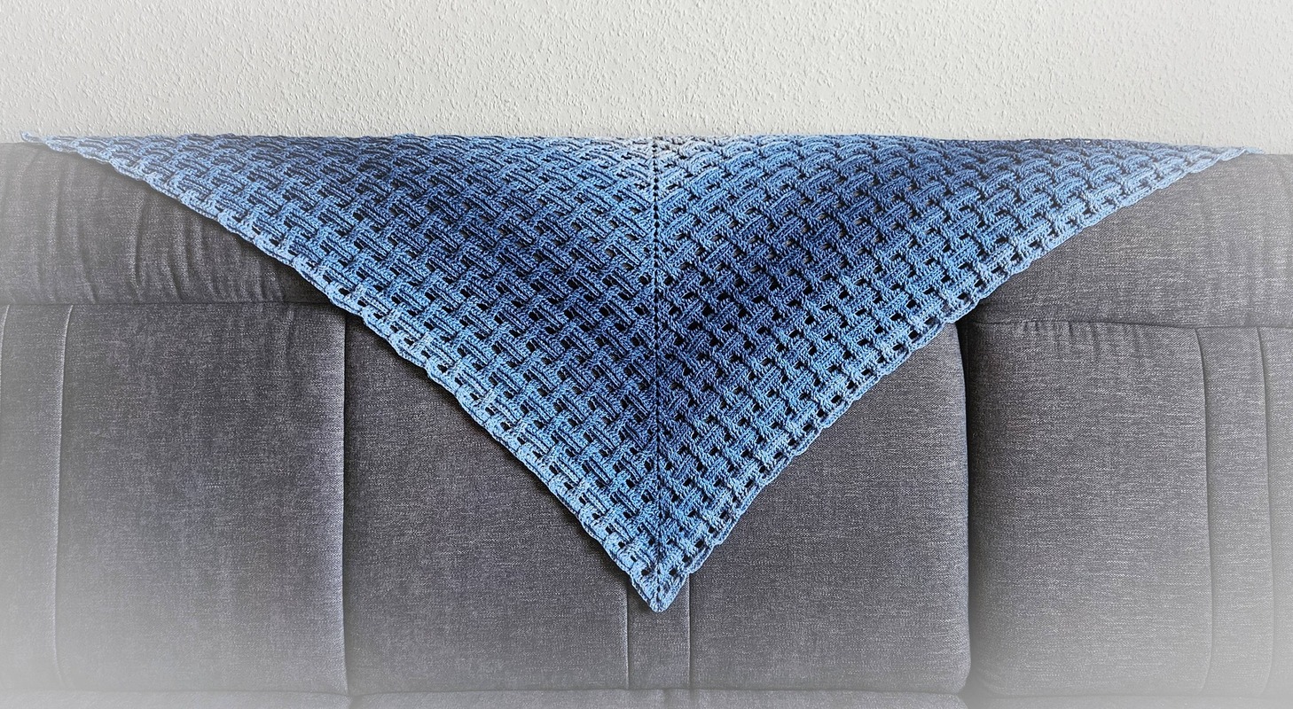 The enchanting Diomede shawl is a deep shawl with a beautiful braided pattern. Loose and airy, playful with small braids, crochetable in any size—a companion for every season!