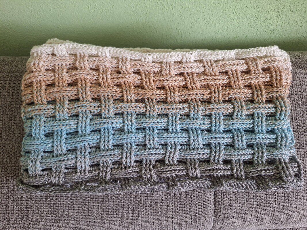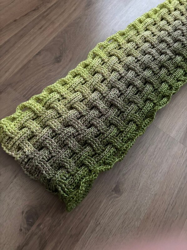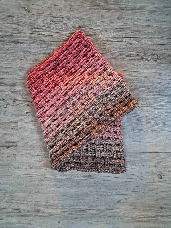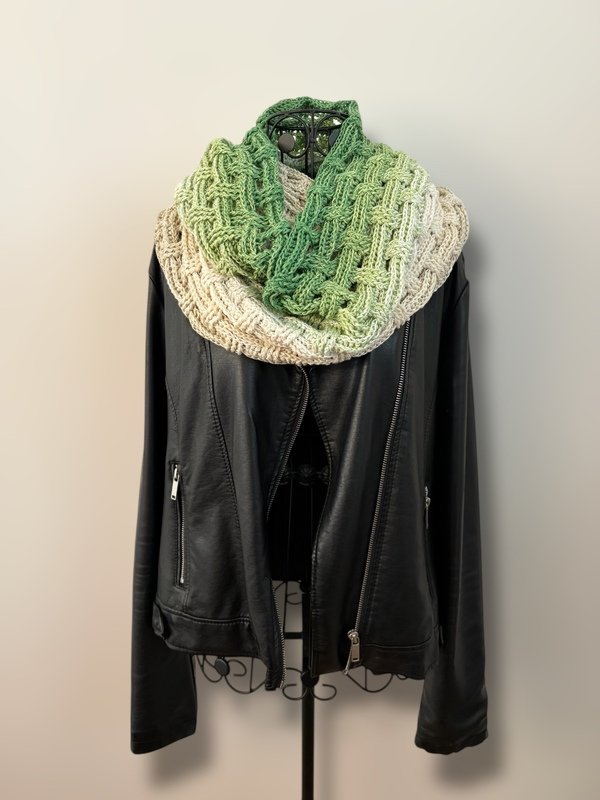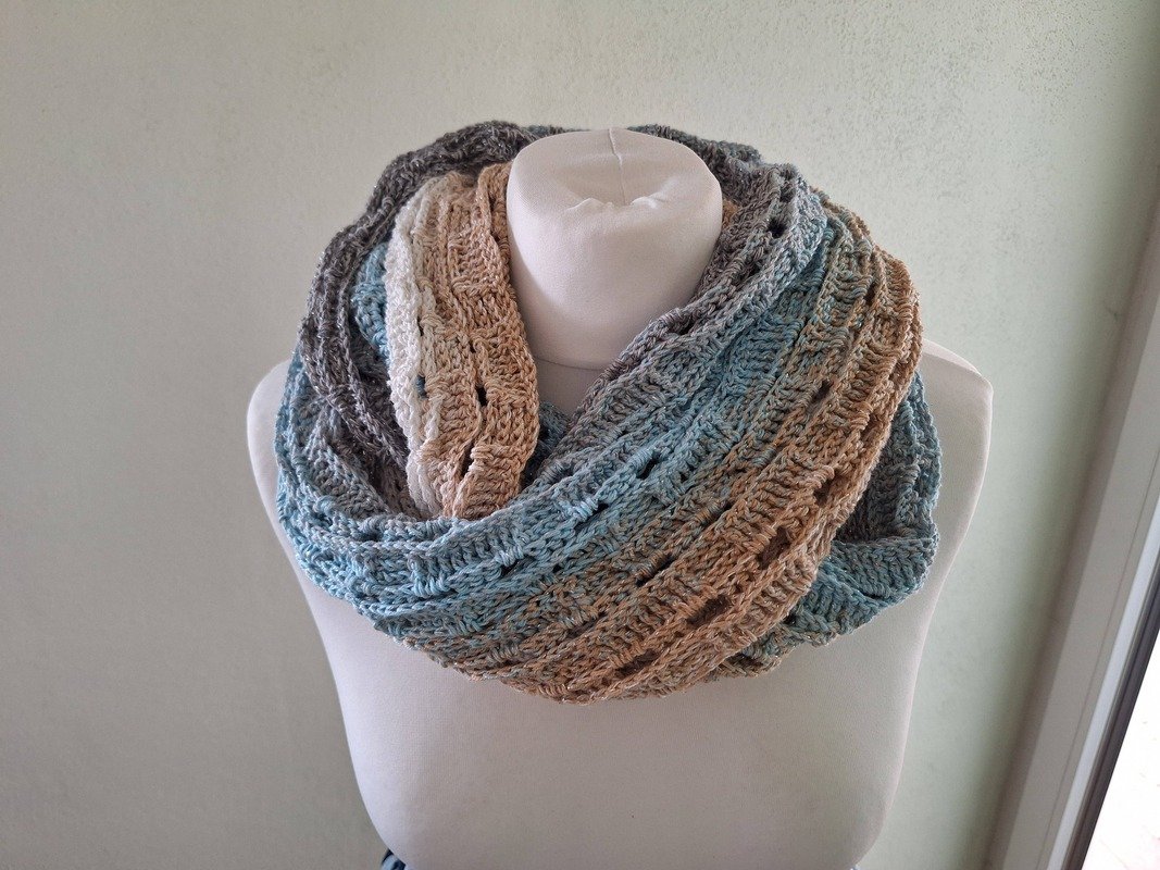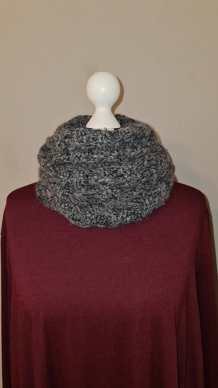 The loop scarf can be crocheted in any size, as the rows are repeated. Please note that if you use a different wool, a different needle size or generally crochet looser/tighter, the size may vary.