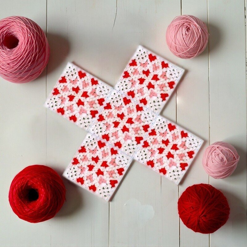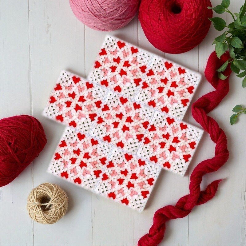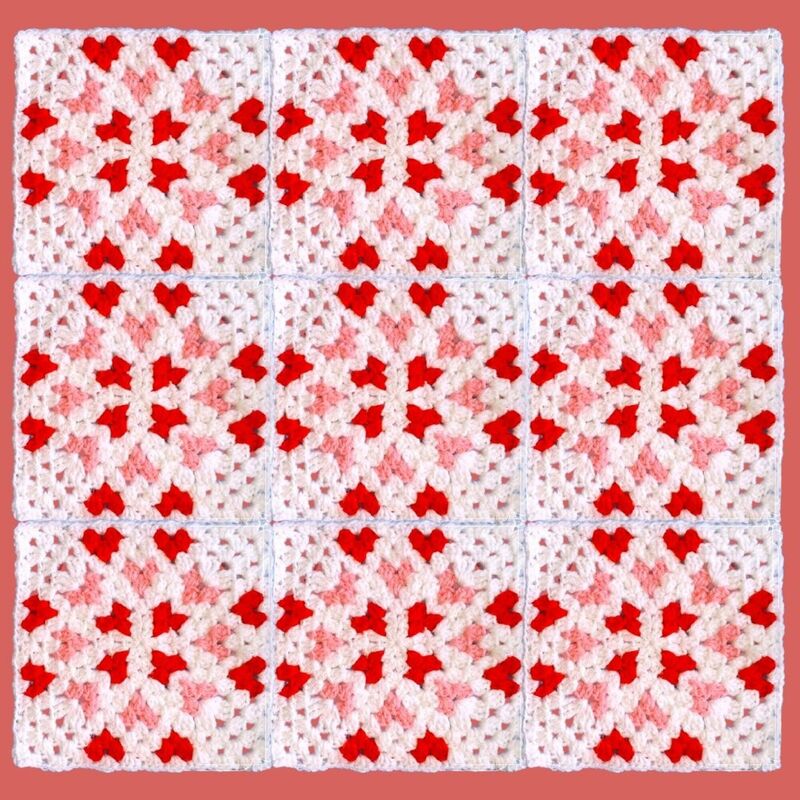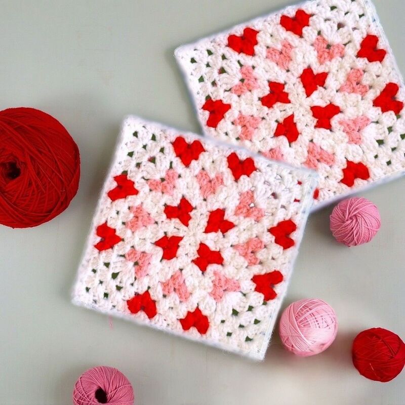 This granny square design is a cute crochet pattern filled with mini hearts that look perfect for valentine crochet projects ️