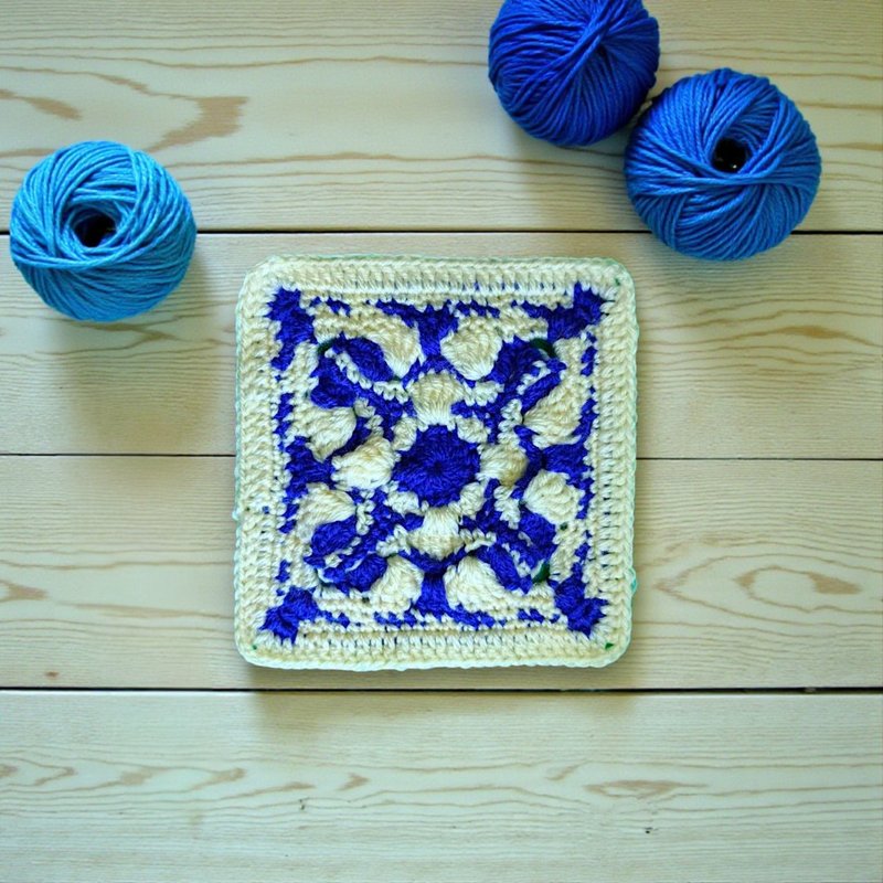 It brings the beauty of traditional Portuguese tile art into a modern crochet project with timeless charm .